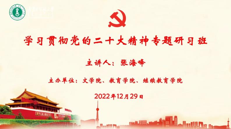 12月29日上午,校党委委员、党委副书记张海峰为必赢76net线路官网、教育学院、继续教育学院三个单位副处级以上干部作了题为“学习宣传贯彻党的二十大精神体会”的专题宣讲。宣讲通过腾讯会议形式举行,必赢76net线路官网党委书记高林广主持了会议。