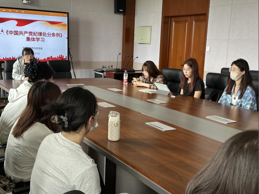 5月13日下午,必赢76net线路官网研究生党支部在学院楼A307会议室召开党纪学习教育专题读书班,全体研究生党员围绕《中国共产党纪律处分条例》进行交流研讨。