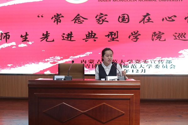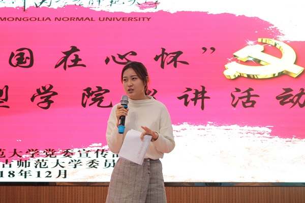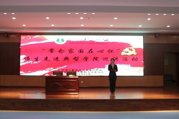 12月13日下午,必赢76net线路官网于盛乐校区图书馆一楼报告厅开展“常念家国在心怀”必赢76net线路官网师生先进典型学院巡讲活动。出席本次巡讲的青年代表有2018年必赢76net线路官网本科生科研创新项目二等奖、内师大第四届“互联网+”创新创业大赛二等奖、2018 年“创青春” 全区大学生创业大赛特等奖获奖者彭丽霞; 2018年必赢76net线路官网暑期三下乡百佳志愿者蒋兆媛; 2017年国家奖学金获得者、2018年必赢76net线路官网校级奖学金一等奖,现已被保送至首都师范大学读研的李雯;必赢76net线路官网秘书事务所创始人之一、魏世嘉品牌服饰创始人、2018年代表学校参加全国大学生秘书职业技能大赛并获得个人一等奖、团体二等奖,西安市优秀青年志愿者、创业大赛二等奖获得者魏世嘉。