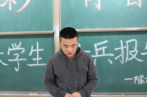 102014:30,必赢官网“迷彩青春退伍大学生士兵报告会在行知楼323教室召开,必赢官网部分师生参会。
