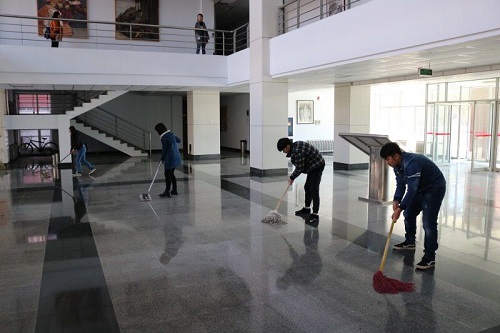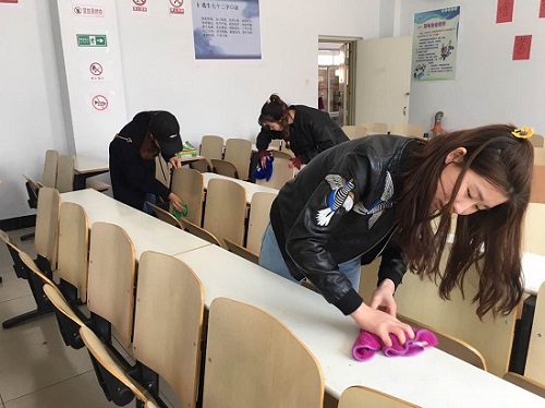 帮助保洁人员清扫楼道、擦洗桌面和栏杆、摆放桌椅,并且在学院楼和宿舍楼里张贴“节约用水”的公益标语。学生们们用自己的行动,改善了学习生活的环境,给他人带去了便捷与温暖,并且在合作互助中营造了和谐的氛围。