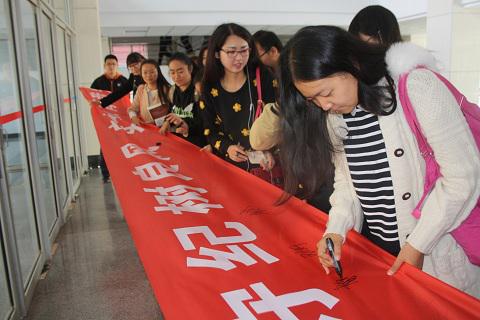 为了调动师生参与热情,在10月23日,必赢官网组织了签名活动,每位同学都郑重地签下了自己的名字,作出了自己的承诺:“安全从我做起,从身边做起”。同时,在学院楼悬挂“文明守纪树良风,安全教育我先行”条幅,进行宣传。