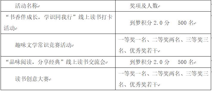 所有参与此次“求实读书月”系列活动的学生均可获得一定形式奖励:到梦积分/奖品+证书)