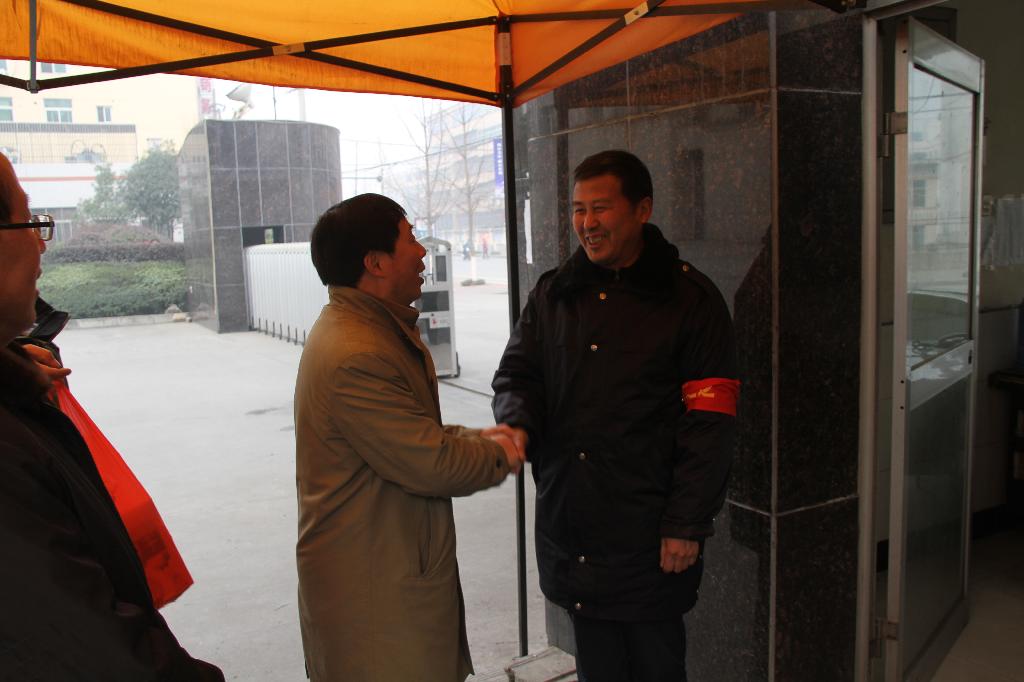 胡鸿晓与值班人员亲切握手、交谈,细心地向他们询问值班和生活情况,向大家致以新春的祝福和节日的问候。感谢他们牺牲节假日,放弃与家人团聚的机会,坚持值班,确保了学校的正常运行和安全稳定。