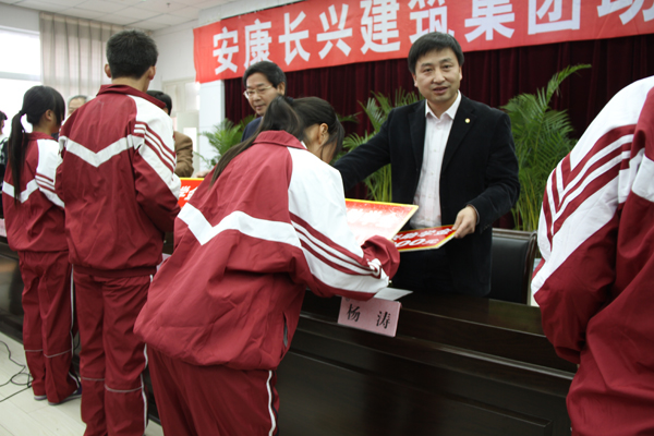 杨涛在讲话中对长兴建筑集团爱心之举、慈善之行表示崇高的敬意,向在捐赠联系中给予巨大帮助的安康市慈善协会表示感谢。对我院学生资助工作体系做了简要介绍,同时希望全体受助学生把社会各界的关爱,化为奋发学习的动力,在逆境中奋进,珍惜来之不易的学习机会,树立远大的理想,将来学有所成,再将这份爱心传播到全社会需要帮助的人。