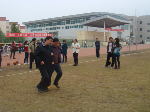 为深入推进“创先争优”活动,落实学院的“五联共建”制度,11月6日上午,机关二党支部、外语系党总支、体育系党总支在学院田径场共同举办了一次“冬季阳光体育健康活动”。学院党委组织部部长胡波、外语系党总支书记李岩、体育系党总支书记风冯德学与五十余名教师党员以及几十名学生参加了此项活动。 活动设置有滚铁环、托球跑、两人三足跑、投乒乓球、跳绳、摇呼啦圈、拔河等项目。师生们利用这次难得的户外运动机会,积极参加到冬季体育活动中来。大家精神饱满,积极参赛;比赛项目形式多样,情趣盎然。整个比赛活动场面紧张而有序,人人充分享受着运动带来的活力与快乐。 组织此项活动,旨在将“五联共建”的精神在共建单位发扬光大,旨在加强机关职能部门与教学单位的联系,更好的发挥教学部门、职能部门在教书育人、管理育人和服务育人中的作用。同时,以健康高雅的活动积极正确的引导学生,寓教育于活动之中,让他们切实感受党组织的关心和温暖,培养师生情感,激发他们认真学习的热情,促进优良校风、教风、学风的形成,推动学生全面成才。 活动也丰富了校园文化生活。