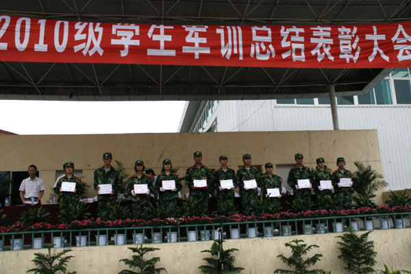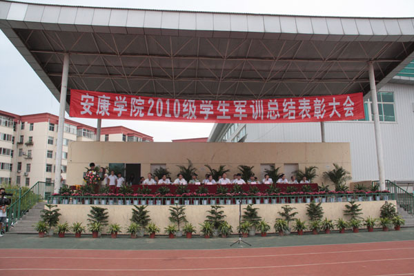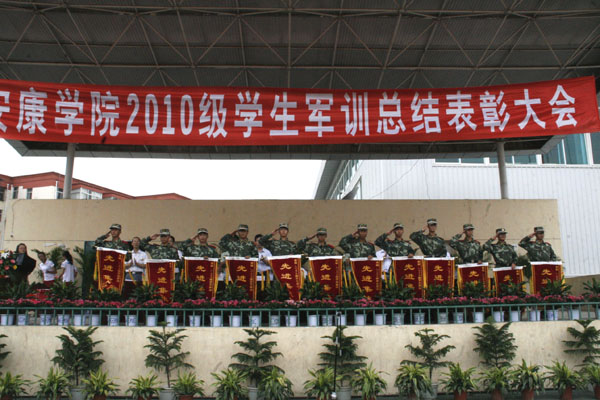 9月21日下午,我院举行2010级新生军训总结表彰大会。学院领导王兴林、胡鸿晓、闵小平、杨行玉、向继明,武警安康支队教导队大队长徐信军、政委袁剑锋,我院有关部门负责人、各院系党总支书记出席大会。大会由党委副书记、纪委书记闵小平主持。