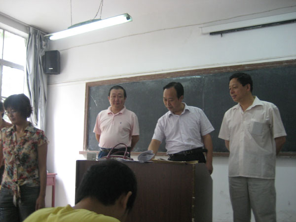 学院竞赛领导小组成员教务处长单福东、教务副处长权大学、数学系主任赵临龙等到考场巡考。