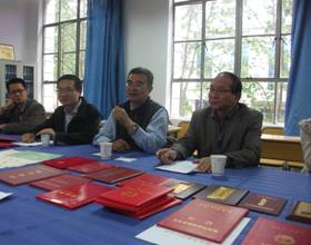 4月19日清华大学龙桂鲁教授、中科院数学与系统科学研究院骆顺龙研究员、陕师大曹怀信教授一行来开元官网指导专业发展并作科普讲座。下午16:30,在数统系会议室,来访学者与数统系应用数学专业和电信系应用物理专业教师举行座谈会,为两系的专业发展和人才培养提出了宝贵意见。