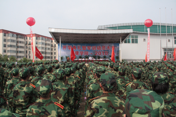 金色九月,合着新学年的快乐,迈着轻盈的步伐,在这个收获的季节和美丽祥和的日子里,我院2010级新生开学典礼暨军训动员大会于9月13日上午在东校区体育场隆重举行。学院党委书记杨涛,院长王兴林,党委副书记胡鸿晓,副院长陈刚、向纪明,武警安康支队副政委曾海尧,副参谋长祁乾周以及各院系主任、党总支书记和相关部门负责人在主席台就坐,2010级新生及各院系负责军训的辅导员、承训部队教官出席了大会。大会由陈刚主持。