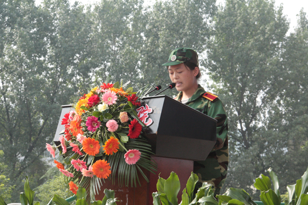 杨涛书记为军训团授旗。红旗猎猎,我院2010级新生为期12天的军训由此全面展开。