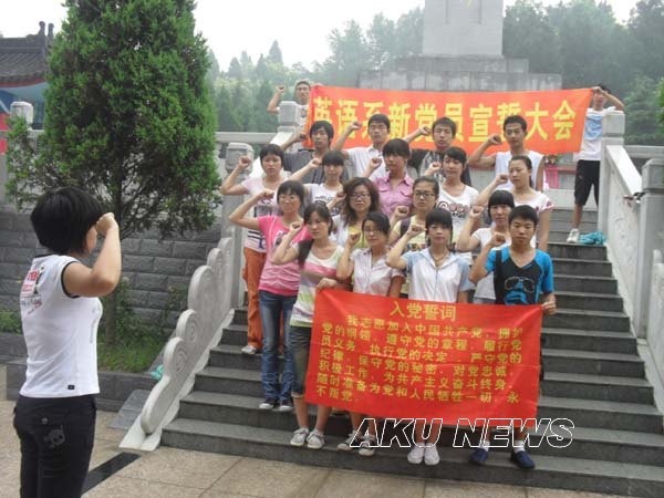 在建党八十九周年之际,6月26日上午,外语系二十名预备党员及部分教工在教工支部书记胡卫卫、学生党支部书记周静的带领下,冒雨前往安康市烈士陵园,迎接党的生日,缅怀革命先烈,并在那里举行了入党宣誓仪式。