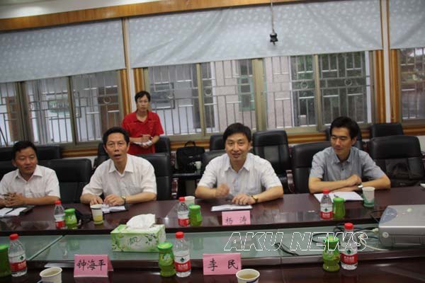 在吉首大学,杨涛一行观看了专题片《使命》并与吉首大学校长李民、副校长钟海平及相关部门、学院负责人进行了座谈。双方就学科建设、科研工作、教学改革等问题进行了探讨。钟海平就吉首大学的办学特色和教学科研等向杨涛一行作了介绍。杨涛对吉首大学的办学特色和科研工作给予高度评价,表示将认真学习和借鉴吉首大学成功的办学经验,进一步加强两校之间的交流与合作,促进两校共同发展。随后,两校相关院系、部门负责人进行了更进一步的对口交流。