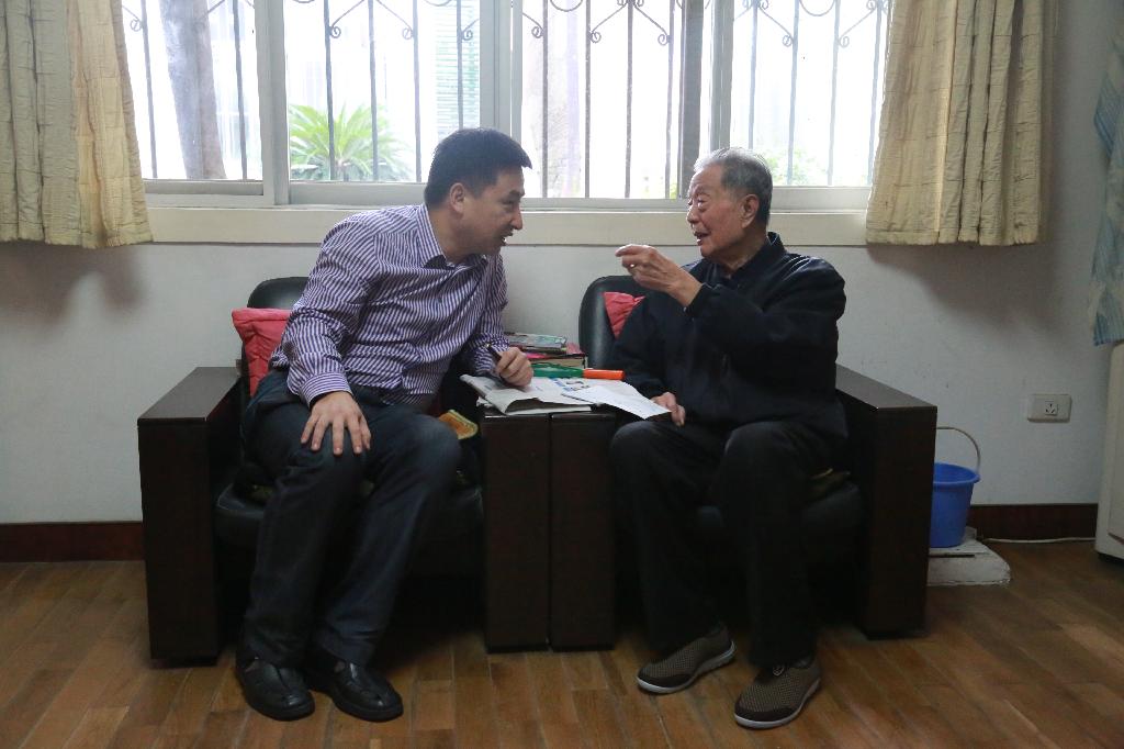 每到一家,杨涛、闵小平快步向前,搀扶老人,握手致意,亲切地与老同志拉家常,嘘寒问暖,详细了解老同志们的生活起居情况和身体状况,得知老人饮食有节、起居有常、身体健康时,校领导十分高兴。在走访慰问过程中,学院领导简要介绍了学院改革发展情况和取得的显著成绩,对老同志们为学院建设、发展做出的贡献表示衷心感谢,希望老同志们保重身体,安享晚年。老同志对院领导的关心表示感谢,为学院取得的成绩感到高兴,祝愿学院的明天更加美好。