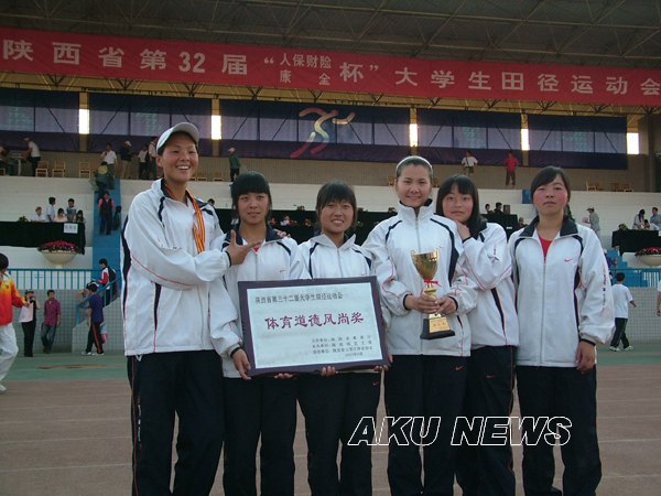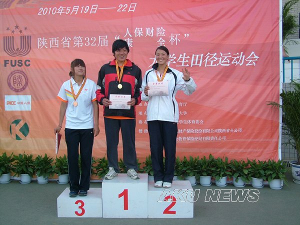 陕西省第32届大学生田径运动会于2010年5月19-22日在陕西师范大学长安校区举行,共有67所高校的70多支队伍参加了本届运动会。经过四天激烈的拼搏,开元官网运动员夺得体育院系专业组:女子七项全能、男子跳高银牌,多个项目取得前六名,尤其是女子团体总分获得第五名,这是开元官网体育系建系以来首次在各类体育比赛中跻身于我省15所体育院系前六强,创造了KY开元集团官网田径运动史上新的辉煌。我院代表队在大会期间顽强的拼搏精神和良好的赛风赛纪受到好评,被大会授予体育道德风尚奖。