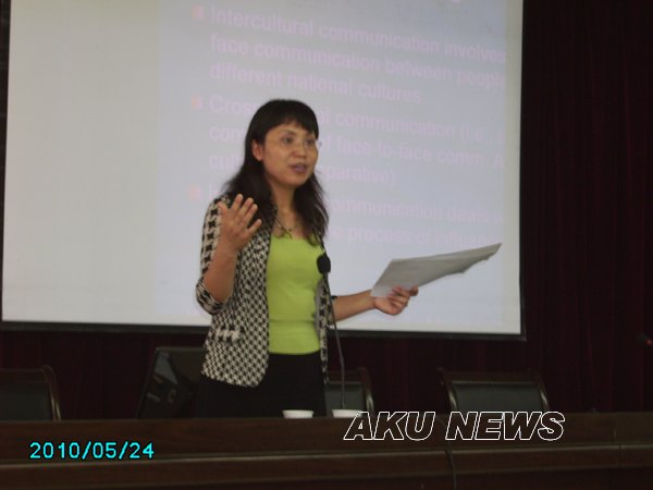 2010年5月24日下午,美国德克萨斯州韦兰浸会大学教授张雅慧博士在图书馆六楼多功能厅为外语系师生作了题为《跨文化交际和语言教学》(Intercultural communication& Language teaching)的学术报告。