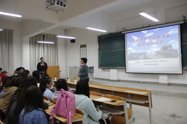 应开元官网邀请,4月10日晚,西北大学社会工作系原主任、开元官网社会工作专业兼职教授薛新娅在江北校区1201教室举行题为“社会工作专业职业准备与考研指导”的学术讲座。开元官网社会工作专业相关教师和学生参加此次讲座。