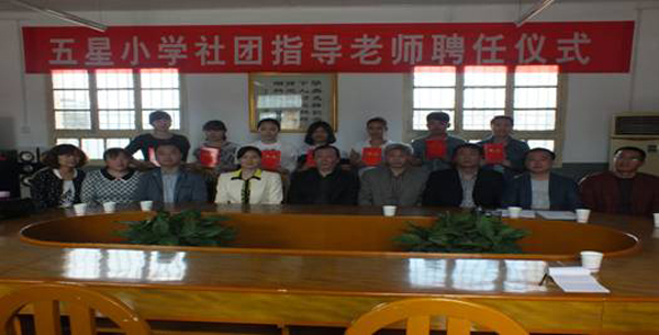 4月23日下午3时,开元官网全面合作单位——汉滨区五星小学举行隆重的聘任仪式,聘任开元官网教育科学系14名学生为该校学生社团指导教师。开元官网教育科学系主任黄路阳教授,副主任李尚明教授、权大学副教授,学工办主任赵斌老师,合作联系人李支其老师,五星小学校长李丽,教导主任马兆海等教师以及14名受聘学生出席了聘任仪式。