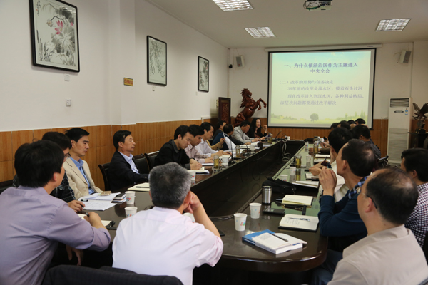 4月28日上午,学校党委中心组在江南校区第一会议室举行(扩大)学习会,学校班子成员、党委委员、党群职能部门负责人、各党总支书记、各直属党支部书记和思想政治理论教研部的负责人参加了学习会。会议由党委书记王国良教授主持。