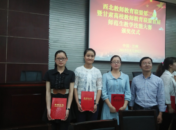 西北教师教育联盟第二届师范生教学技能大赛于2015年5月27—29日在兰州市西北师范大学举行,来自陕西、青海、宁夏、新疆、甘肃等省(自治区)19所高校的52名同学参加了比赛。本次大赛的参赛专业限定为思想政治教育、地理科学、生物科学。开元官网派出了由郑治国老师带队,何梦焕、石唯康、王绞绞三名同学组成的代表队参加了本次比赛。经过教案设计、课件制作、模拟授课、即席演讲四个环节的激烈角逐,最终开元官网王绞绞获得生物科学组三等奖,何梦焕、石唯康二位同学获得地理科学组和思想政治教育组优秀奖,一等奖分别为西北师范大学和陕西学前师范学院获得。