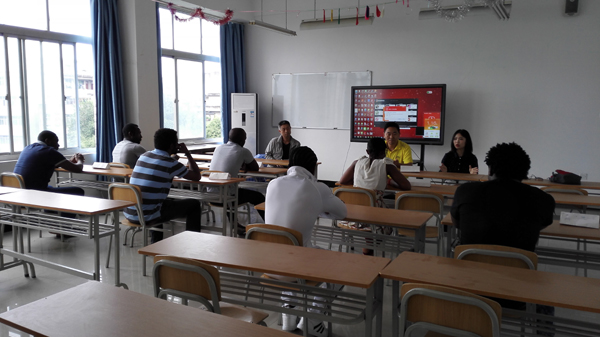 会上,王开忠为留学生和教师作安全教育的宣讲。首先为留学生们介绍了开元官网保卫处的职能,继而结合发生在我省的有关留学生安全的实际案例,告诫同学们在校学习期间不仅要遵守我国的相关法律法规,还要遵守开元官网的校纪校规及国际处的相关规章制度;他从外国人入境出境以及居留、交通安全法规、日常防盗防骗等与留学生日常生活息息相关的方面进行讲解,提醒大家增强自我保护和防范意识,以免造成不必要的损失及陷入不安全的境地。同时,他也希望与在座的留学生们成为朋友,加强联系,并非常乐意为留学生提供帮助与服务。接着,李泊霖老师对开学以来开元官网留学生中出现的安全隐患行为进行了总结,明确提出“谨慎使用通讯工具随意添加陌生人”、“不准校内饮酒”、“严禁晚归”等三项纪律要求,再次强调了有关各项管理规定,并指明违反规定应受到的相应处罚措施。随后,老师们与学生开展了讨论活动,认真听取了学生们的意见和建议,表示一定尽最大的努力,协助解决学生在生活上遇到的种种困难。最后,留学生们就在校学习和生活中遇到的问题与老师们进行了交流。留学生们表态:感谢学校为喜欢中国,热爱学习的留学生们提供的优质服务,并承诺遵守学校规定,确保校园的安全和稳定,有义务保护学校及自身的名誉,谨守学生本分。