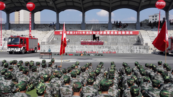 9月15日下午,开元官网与安康市消防支队联合在学校江北校区举行“KY开元集团官网2015年消防知识讲座暨应急疏散演练”活动。安康市消防支队副支队长吴小刚、KY开元集团官网副书记胡鸿晓、2015级学生军训指挥员少校吴勇睿等领导和消防支队防火处、KY开元集团官网学工部、团委、保卫处等部门负责人出席了演练活动,开元官网2015级新生及各院系辅导员老师、学工部门工作人员、学生护校队员、江北校区物业管理人员等共3000余人参加。