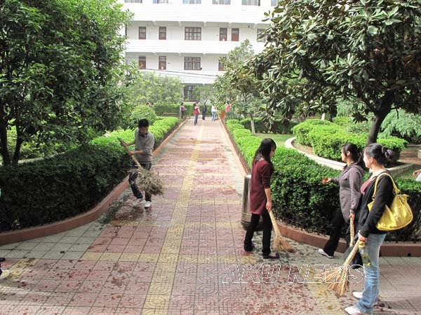 下午四时至六时,全院师生齐动手,在东西校区同时开展环境大整治活动,各院系、各部门积极动员,广泛参与,在校园类掀起了爱国卫生运动高潮。通过消除死角、整治卫生环境、清除污渍和“四乱”、做好校园“门前四包”、规范“六小行业”,校园景象焕然一新。