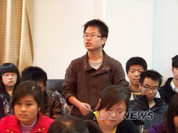 胡鸿晓就思想政治理论课对培养学生世界观、人生观的重要意义与同学们进行了交流,并指出此次会议的目的是通过与学生的交流了解我院思想政治理论课的开课情况,了解教学过程中存在的值得肯定的地方和不足之处,就如何让改进和提高教学质量提出意见和建议,以便进一步提高思想政治理论课的教育教学质量。随后,各位学生代表纷纷针对思想政治理论课各门课程的教学形式、教学内容、教学手段、教学效果、课程安排等各方面谈了他们的感想和体会,对如何改进我院思想政治理论课教学提出了建议和意见。