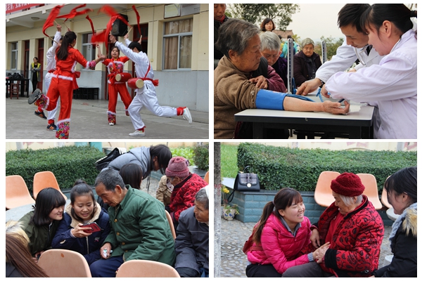 活动以文艺演出及义诊的形式开展。开元官网志愿者们为老人们送去了广场舞、腰鼓、手语操、歌曲、山歌竹笛等丰富多彩的文艺节目,每一个节目都蕴含着同学们对老人的敬爱之情。市中心医院青年志愿者为老人们检测血糖、测量血压,根据每个人检测结果给予了诊断意见和饮食建议,同时为老人们送上药物,表达对老人健康的关爱之情。