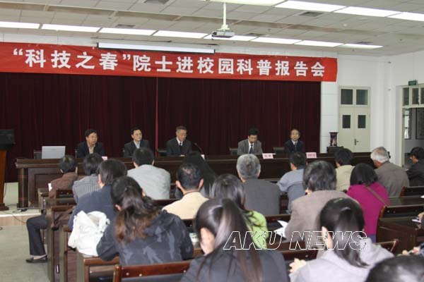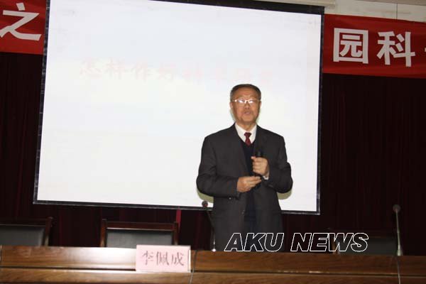 2010 年 4 月9日下午,中国工程院院士、长安大学李佩成教授在图书馆六楼报告厅为我院师生做了题为“怎样做好科学研究”的专题学术报告。各院系主管科研的负责人、副教授及以上职称教师、教研室主任、近三年来学院引进的青年教师及安康市科协 、汉滨区科协、安康市农科所的相关科研工作者约150余人听取了报告。 报告会由副院长陈刚主持,安康市科协主席高平致欢迎词。