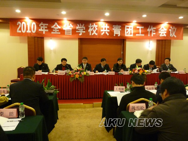 3月10日上午,由陕西团省委主办、我院协办的2010年全省学校共青团工作会议在安康晶海宾馆召开,会议传达了全国学校共青团工作会议精神,总结了2009年学校共青团工作,对2010年全省学校共青团工作做了安排部署。团省委书记卫华,团省委副书记张小平,安康市委常委、市委组织部部长鲍永能,我院党委书记杨涛,团省委常委、组织部长刘峰,省教育工委组群处副处长、团工委书记王恒斌,安康团市委书记李全成,团省委学校部副部长单舒平等领导出席了会议。来自全省各高校的团委书记、各市团委主管学校工作的副书记、学少部部长、部分重点中职中学团委书记共150余名代表参加了会议。会议由单舒平主持。