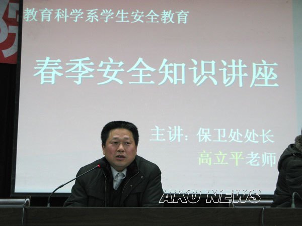 为增强学生安全意识,教育科学系不断加强对学生的安全知识教育。3月11日晚,教育科学系邀请学院保卫处处长高立平为全系学生进行春季安全知识教育。