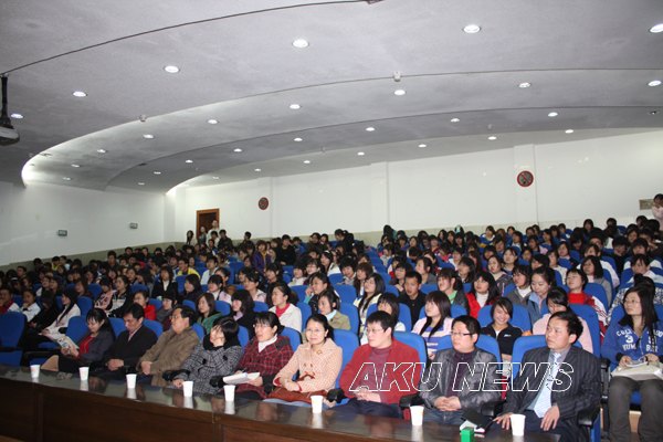张新科教授以文化研究为切入点,从六个方面论析《史记》的文化价值:1、壮丽的历史画卷。2、深刻的思想。3、独特的民族列传。4、不朽的民族精神。5、鲜明的人物形象。6、永远的经典宝库。论述角度新颖、论据充足、语言精练,报告引起了与会老师和学生的共鸣,赢得了阵阵掌声,整个报告会气氛热烈,收到了良好的效果。