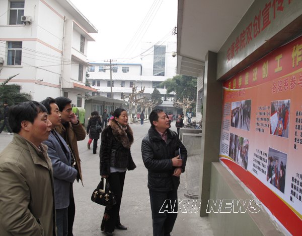 副院长、双创工作领导小组副组长杨行玉向检查组简要汇报了学院双创工作的特点:一是学院对双创工作的认识是到位的。学院认为双创工作是一个有力抓手,与学院常规工作是分不开的,学院希望通过双创工作的开展中,与学院常规工作紧密联合,双轨并行,同步发展。二是学院当前双创工作是有成效的。学院党政高度重视,全体师生共同参与,全校都希望成为安康市双创工作的排头兵,也希望通过双创工作全面提升学院文化品位,全面促进学院各项工作。三是学院双创工作任务依然艰巨。客观上讲,学院双创工作任务太重,学院要承担大桥路、南环路、育才路、安火路这四条城区主要街道上临街片区的创建工作,还要承担“创优”工作重要部分,创卫工作更是繁重。问题虽然很多,但是学院双创工作一定会按照市委、市政府的部署,在市双创办、各片区双创办的领导下,尽快完善,逐步提高。