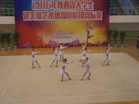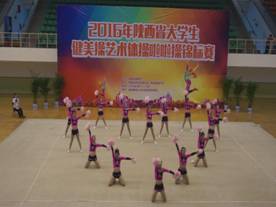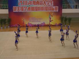 2016年“陕西省大学生健美操、艺术体操、啦啦操锦标赛”于5月25—27日在西安邮电大学举行,来自全省39个高校近1000名运动员参加了比赛。健美操比赛分甲(普通本科)、乙(体育院校)、丙(高职高专)三个组,共设25个项目。乙组共有8支参赛队伍。