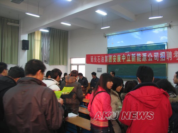经学生就业处与延长石油集团多年的联系与考察,我院与延长石油集团陕西延长中立新能源有限责任公司达成毕业生就业协议,该公司2010年1月9日到我院进行了首批人才专场招聘会,公司人力资源部部长夏勇等人对我院2010届150余名毕业生进行了考核。