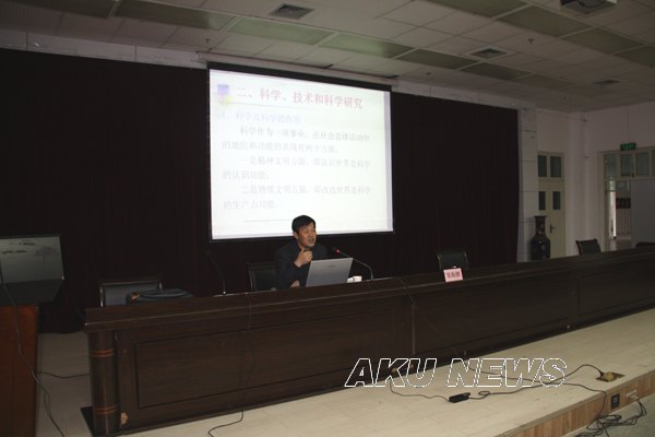 窦海潮同志在3个多小时的报告中,用生动朴实的语言,从科学与技术的概念、如何组织和开展科学研究、科学研究方法、教师如何选题及申报课题等五个方面进行了详尽的讲解。