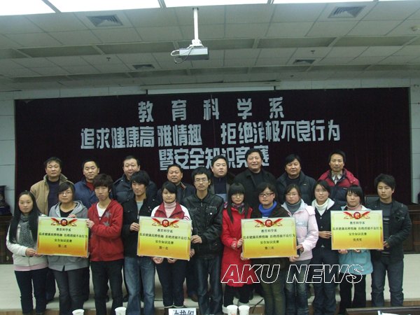 教育科学系积极响应学院开展“追求健康高雅情趣 拒绝消极不良行”专题教育活动的号召,迅速行动,经过精心筹划,12月3日下午,教育科学系在我院图书馆六楼报告厅举行了“追求健康高雅情趣 拒绝消极不良行为暨安全知识竞赛”活动。