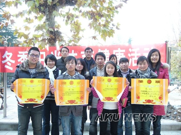 本届冬季阳光体育健康活动共设有跳棋、跳绳、踢毽子、乒乓球、拔河等 ,经过两天的角逐,2008级英语教育二班、张楠、刘瑶、姚娇娇、姜建党、徐维玉等同学分别取得了拔河、跳棋等项目的第一名,其他学生分获二、三名。学工部部长郑树青、系党总支书记李岩、系学工办主任任森龙、辅导员周静为获奖班级、个人颁发了奖状和证书。