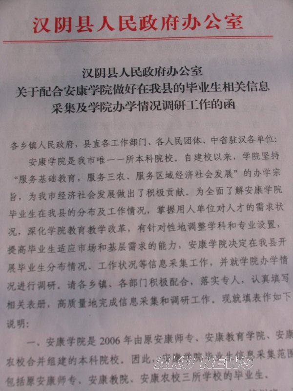 为期半年的调研, 深入到了安康市九县一区的近100个用人单位,发放调查表8000余份,收集校友信息1万余人,征集用人单位的意见、建议1000余条。