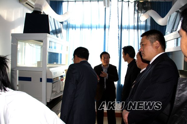 11月2日,石泉县县委书记邹顺生、县人大常委会主任韩永进率领石泉县蚕桑产业领导小组全体成员以及部分乡镇负责人一行20余人来开元官网进行学术访问。 代表团一行首先参观了我院陕西省蚕桑重点实验室、陕西省富硒食品质量监督检验中心。