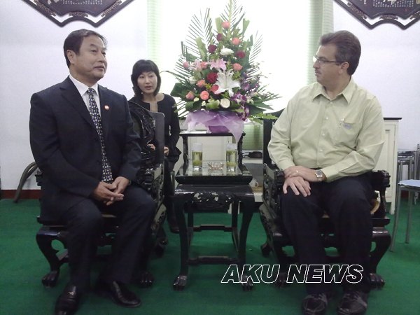 在陈少默纪念馆,王兴林向美国友人介绍了我院的基本情况和陈少默作品风格及艺术价值。在艺术系进行学术交流时,美国友人介绍了美国的音乐简史和几位歌手的基本情况,并现场演唱了5首美国歌曲。在参观陕西省蚕桑重点实验室时,工作人员就彩茧的培育情况和发展前景向参观人员作了介绍。随后,美国友人一行在王兴林等人的陪同下,来到我院茶叶鉴定室,双方就相关事宜进行了热烈而广泛的交流,并互赠了礼物。