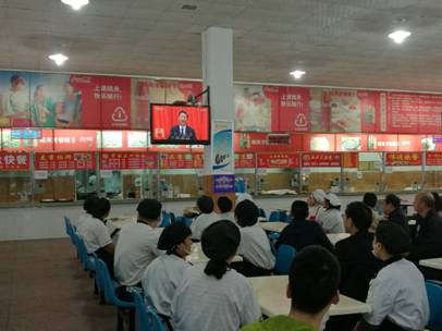 ——后勤保障处。10月18日上午9时,后勤保障处组织全体职工在江北、江南餐厅观看大会盛况,认真聆听习近平总书记代表第十八届中央委员会向大会所做的报告。为了让后勤一线职工、师生及时观看大会盛况,后勤保障处按照学校的要求,分别安排专人对两校区食堂餐厅电视机和网络进行了检查和维护,做好大会直播准备。