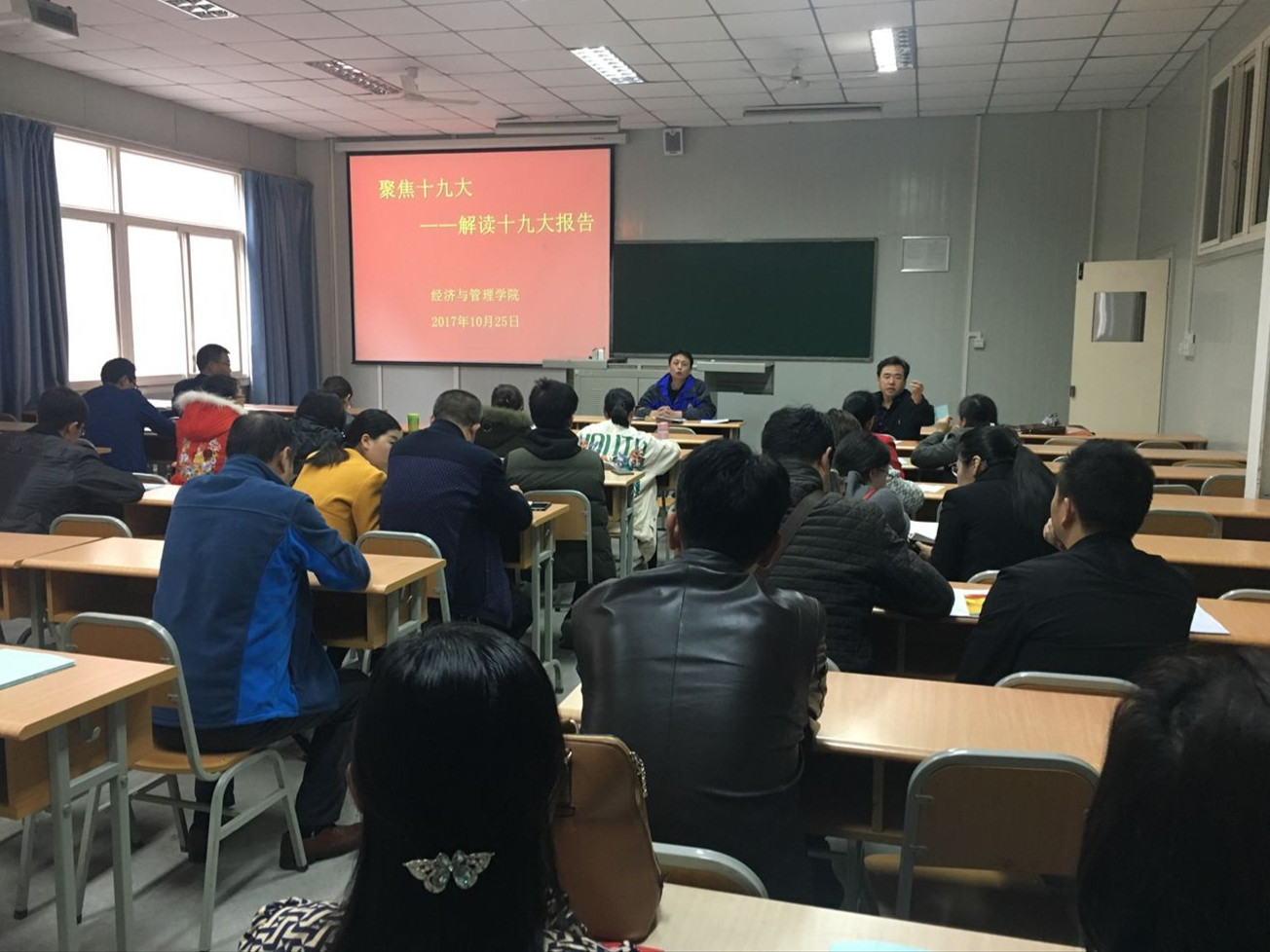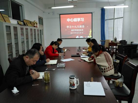 ——教育学院。10月25日下午,教育学院开展党的十九大报告学习研讨活动。党总支宣传委员赵斌带领大家从报告的总体框架到报告的主体内容进行了全面的学习。与会党员教师分享了近期学习的体会和认识。党总支书记屈咏梅和院长黄路阳分别结合教书育人、教学科研等实际工作,就如何进一步学习和领会报告精神提出了要求和希望。10月31日,学院党总支召开中心组十九大精神专题学习,学院党政班子成员、党总支成员参加了学习。会议由屈咏梅主持。党总支组织委员郇红领学了《十九届一中全会》及习近平总书记在中央政治局常委同中外记者见面时的讲话原文,赵斌领学了《专家解读“十九大报告”十大关键词》和《“十九大”对党章做了10处修改》。在学习会上,同志们就学习“十九大”报告情况进行了交流,大家一致认为,党的十九大是中国进入新时代、并开始向发展起来以后的方向迈进的关键时期召开的一次具有重要意义的大会,为国家未来的发展规划出了美好的蓝图,制定了清晰的目标,坚定了全党全国人民齐心协力迈向美好生活的决心。习近平新时代中国特色社会主义思想是党的十八大以来党的重大理论创新成果,是马克思主义中国化的最新成果,是党和人民实践经验和集体智慧的结晶,将其写入党章是对中国特色社会主义理论体系的丰富与发展。屈咏梅要求大家要进一步认真学习、深刻领会贯彻党的十九大精神,结合教学、科研、管理工作。思考如何将其落实到具体的工作中,落实到“两学一做”常态化、制度化中,落实到帮助学生成人成才的全过程中。