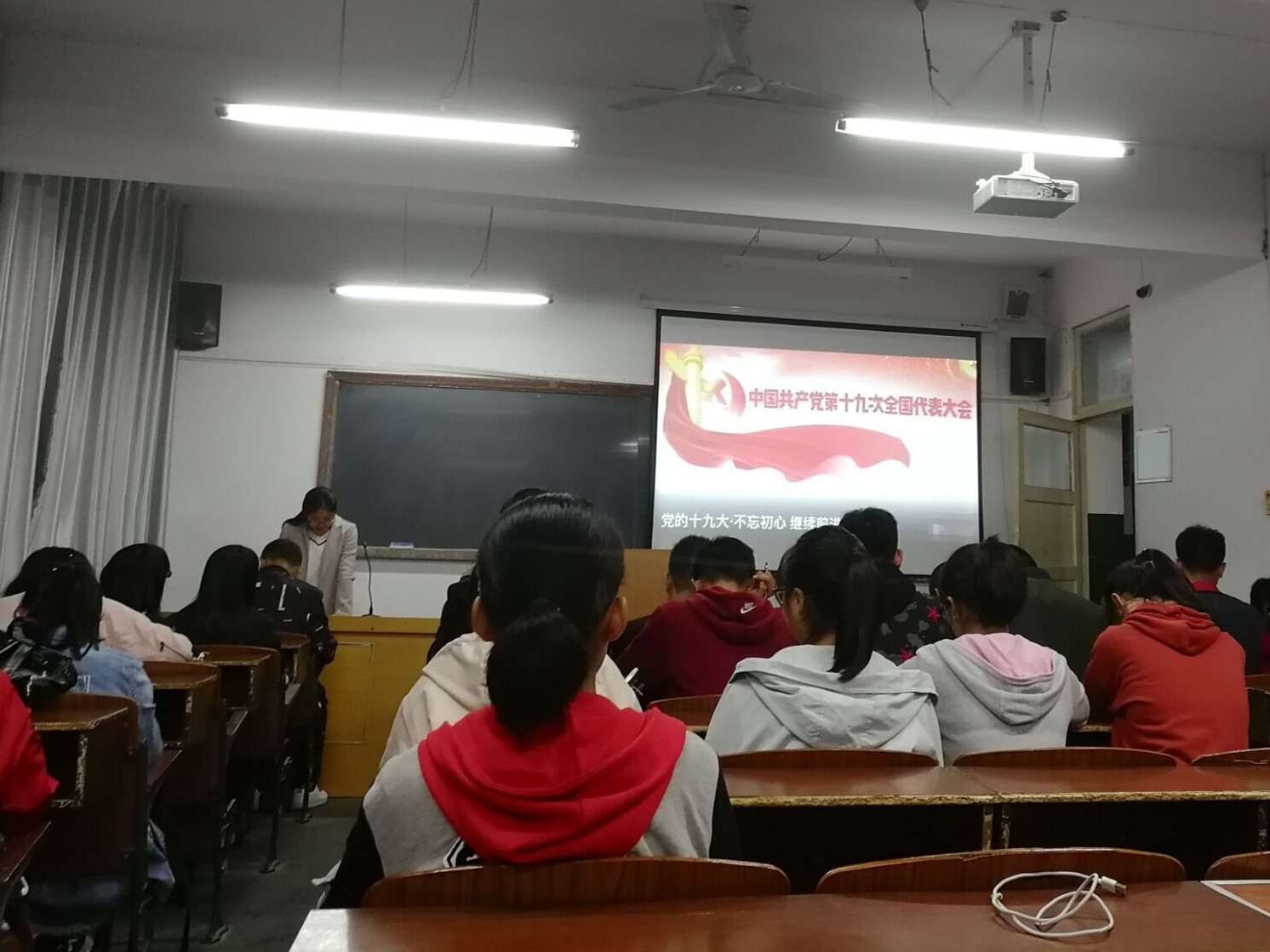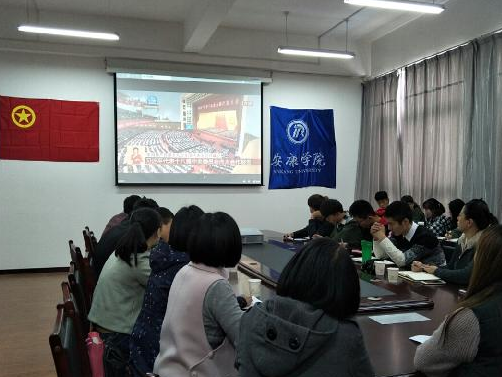 ——政社学院。在观看了十九大开幕式后,思政部立即行动起来,在组织部内教师认真学习的同时,积极部署开展十九大重大理论创新研究工作及十九大精神的“三进”工作。在十九大精神进课堂座谈会上,全体思想政治理论课教师围绕如何及时地把十九大精神、习近平新时代中国特色社会主义思想通过有效的方式方法充实到教学内容中去进行了探讨,并表示,一定要将十九大精神及重要理论创新成果的“三进”工作落实到位,确保能在第一时间用最新理论成果武装学生头脑。目前,思政部还举办了十九大报告图片展,何家理、冯丰收、谢安国、吴亚娥等教师围绕十九大报告中的亮点撰写了理论文章。10月19日下午,学院学生团总支书记邹裟带领2017级社会工作专业学生参加了安康博物馆以《铁血忠魂,抗战时期的安康机场》为主题的开展仪式。让同学们更加真实地了解了安康机场为抗日战争所作的贡献,激发了同学们的爱国热情,从而更加坚定了同学们坚定不移跟党走的信念。10月25日下午,学院在江南校区1021教室召开十九大精神的学习会。学院党总支书记冯丰收领学了习近平总书记在十九大报告的第一部分,并进行了深入的解读。