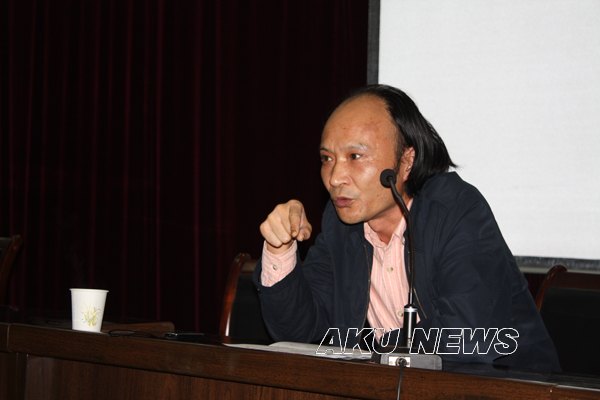 博士生导师段建军教授就“审美活动中的自我与他人”为题做交流讲座,从前苏联伟大的思想家巴赫金的哲学研究深入浅出地谈到了复调小说、小说审美的主体与客体到艺术审美与现实生活,与中文系师生展开对话,并就小说审美的学术问题进行了交流和探讨。