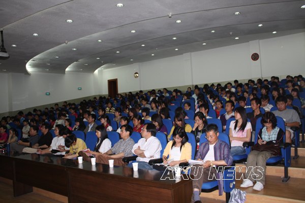 李国平教授针对当前小说的热点问题,从“人应该怎样定位自己”、“文学是谁的事情”、“高手在民间”、“大学能否培养出作家”四个方面阐述了当代大学生的文学立场及态度问题,并为大家解析了陕西文学的现状。报告语言精彩,举例生动,会场气氛热烈。