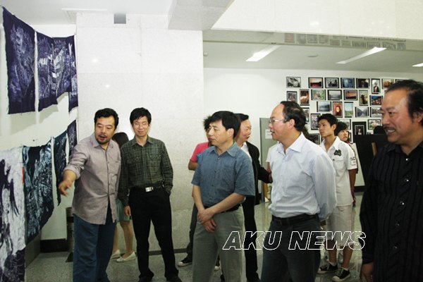 5月22日上午,书画大赛开幕式在我院图书馆举行。安康市文学艺术界联合会副主席罗荣厚、安康市群众艺术馆馆长周墙、安康市美术家协会主席李剑平、安康市书法家协会副主席李大斌、广播电视报社长李焕龙、KY开元集团官网党委副书记胡鸿晓、副院长杨行玉以及相关人员出席了开幕式。罗荣厚、李剑平、胡鸿晓、杨行玉为本次大赛剪彩。
