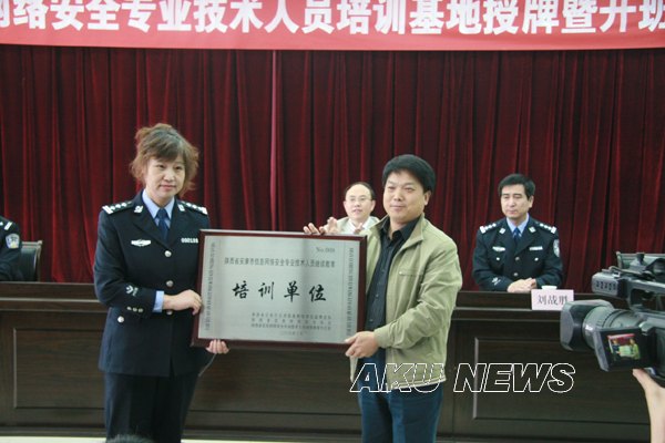 我院党委委员、副院长杨行玉,陕西省公安厅网监总队副总队长高水秦,陕西省公安厅网监总队管理队队长刘战胜,陕西省公安厅网监总队网吧协会会长刘尧,安康市公安局网监支队支队长王朝辉及我院继续教育学院领导出席了授牌暨首期培训班开班仪式。仪式上高副总队长代表省公安厅授予我院陕西省安康市信息网络安全专业技术人员继续教育培训基地,委托我院继续教育学院负责安康市信息网络安全类、信息网络安全技术类和互联网信息内容安全管理类及互联网上网服务业务营业场所安全管理类培训工作。