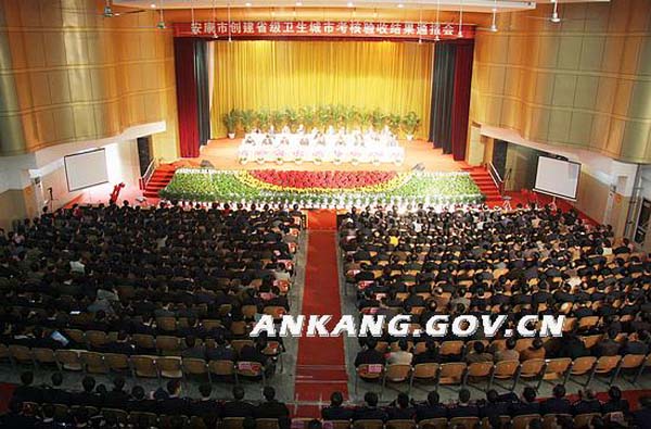 10日上午,安康市创建省级卫生城市考核验收结果通报会在我院西校区大礼堂召开,市委书记、市人大主任刘建明和市委副书记、市长方玮峰从副省长、省爱卫会主任、省考核验收团团长郑小明手中接过了省级卫生城市考核验收鉴定书,这标志着安康市历经880天的创卫工作顺利通过省级卫生城市考核验收。